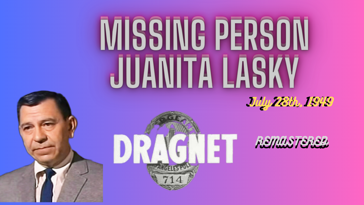 In the “Missing Persons – Juanita Lasky” Dragnet radio episode, Detective Joe Friday and his partner Ben Romero investigate a case at the Missing Persons Bureau. Calling Joe Friday from a distance, Hanah Laski requests that he hunt for her daughter Juanita who has gone missing. With all the information and description provided, Joe begins examining the female. Joe seems to have just missed Juanita at the hotel where she resides.