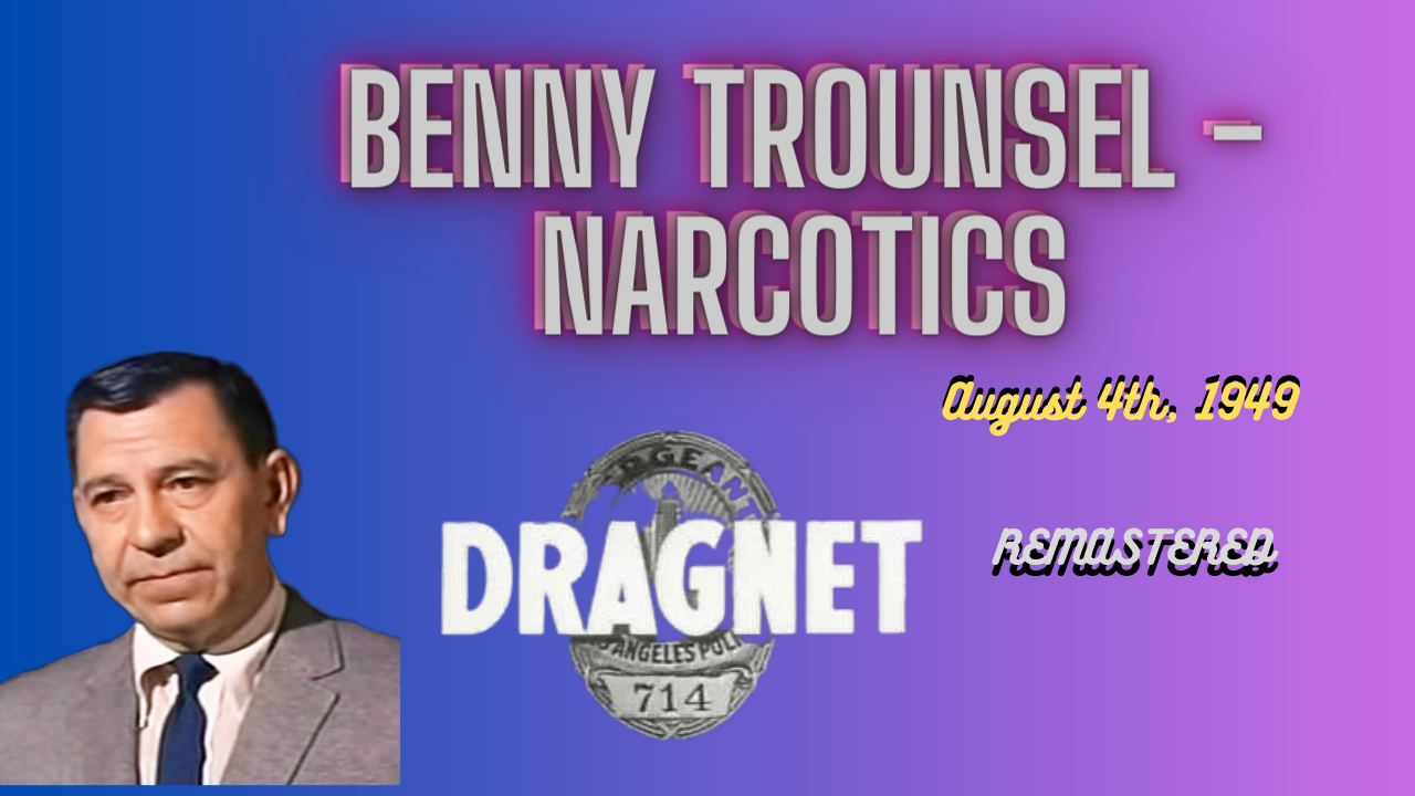 Delve into the gripping episode ‘Benny Trounsel – Narcotics’ from the iconic radio series Dragnet. Uncover the chilling narrative as Detectives Friday and Romero are thrust into a high-stakes investigation following the brutal murder of Benny Trounsel, a small-time narcotics user turned informant. As they navigate the dark underbelly of 1949 Los Angeles, the detectives hunt for the perpetrator who silenced Trounsel just as he exposed a new narcotics ring stealing from doctors’ offices and hospitals. This classic Dragnet episode encapsulates the raw suspense and gritty realism that the series is renowned for, making it a must-listen for fans of vintage crime dramas.